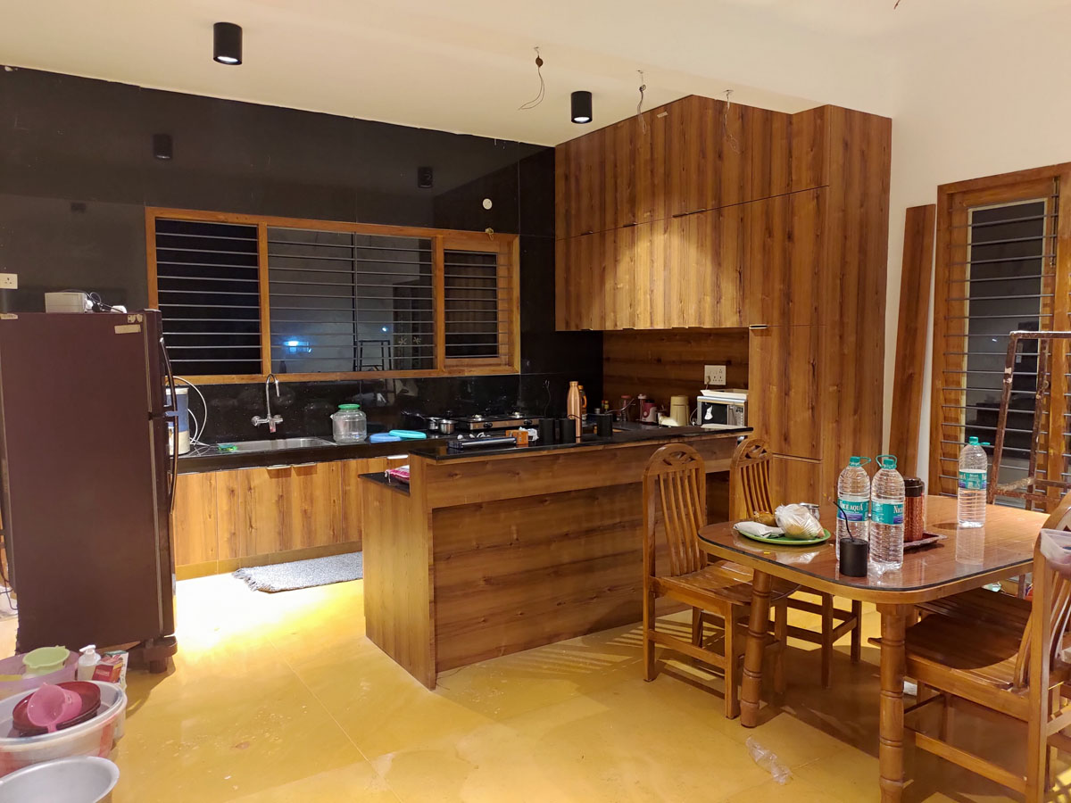 The Cuboid House stands as a testament to premium design and meticulous planning, set within a generous 3000 sq. ft plot WITH 4400 sq.ft builtup area. This project harmoniously blends modern functionality with the timeless beauty of natural materials, resulting in a comfortable and aesthetically pleasing home.