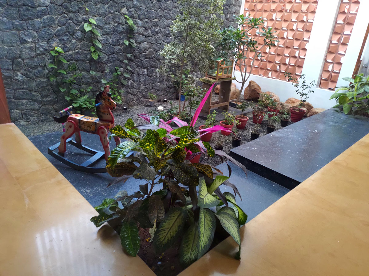 Stone Masonry Courtyard: Incorporates stone masonry that not only adds to the rustic charm but also enhances the thermal comfort of the home.