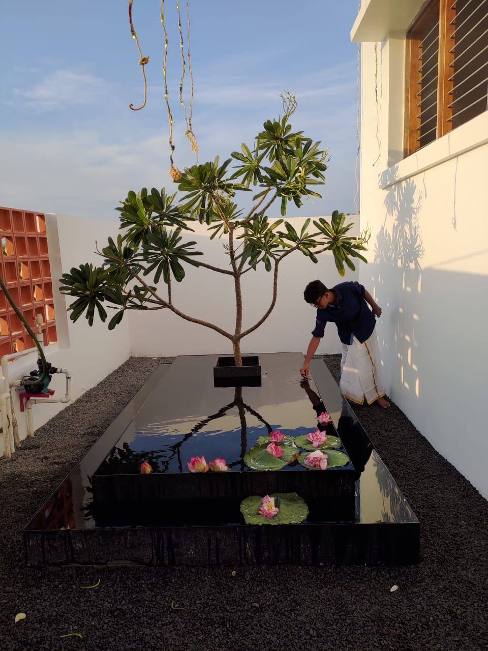 Terracotta Jaali: Strategically placed to allow airflow and diffuse natural light throughout the home while maintaining privacy.